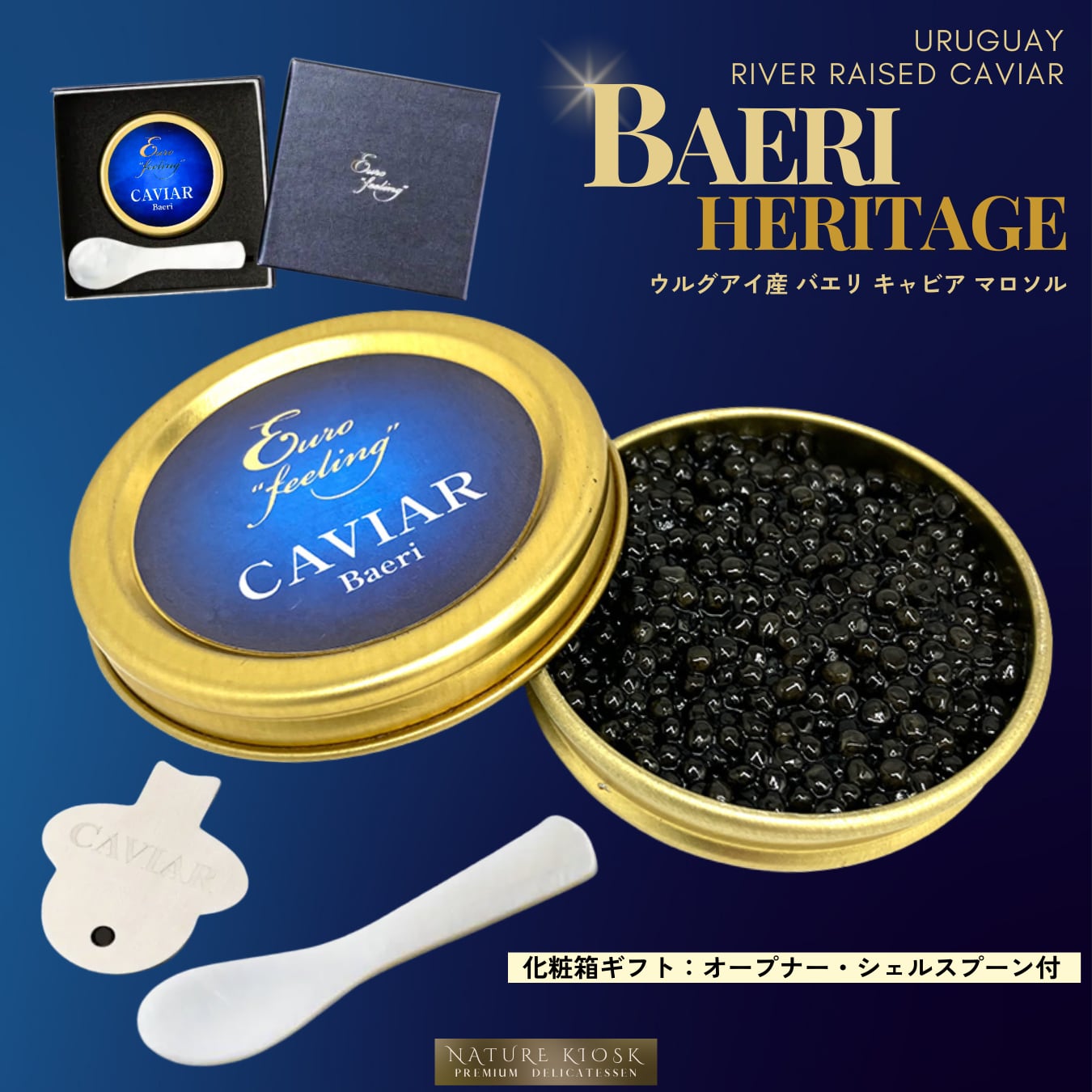 ウルグアイ産 バエリ キャビア 50g|低塩マロソルで感じるクリーミーな旨みと澄んだ余韻|寿司や前菜・白ワインと好相性|Uruguay Baeri Caviar Gift【Nature Kiosk】