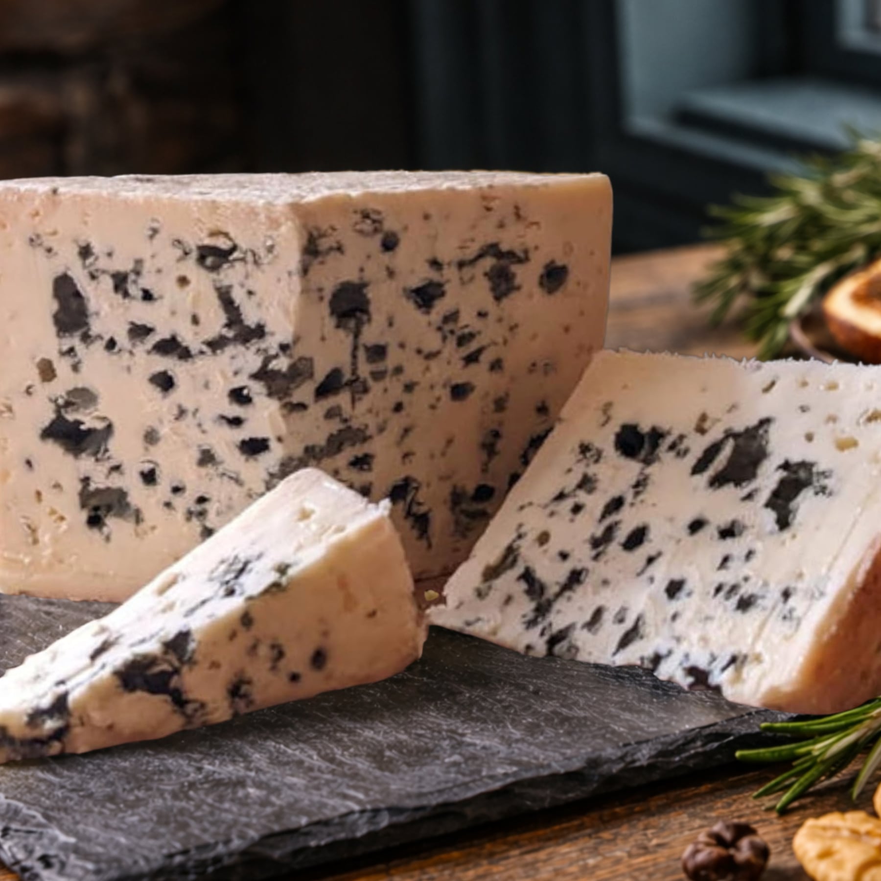 羊乳ならではの濃厚なコク・はっきりとした塩味・青カビの個性が重なり合い、一般的なブルーチーズとは一線を画す、力強く奥行きのある味わいを楽しめます。