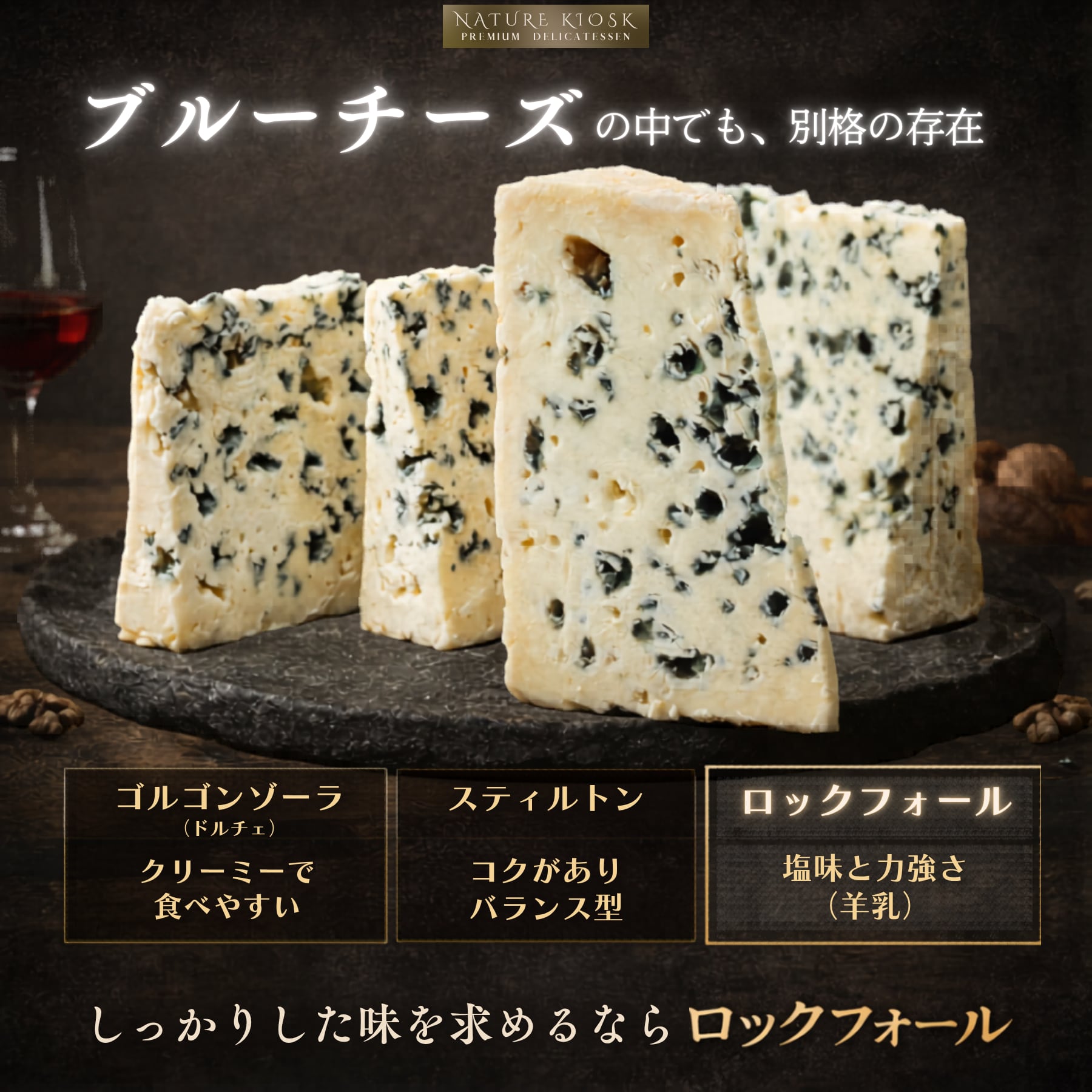 ロックフォール チーズ AOP 1Kg|フランス産 羊乳 ブルーチーズ 青カビ|ワインに合う おつまみ Roquefort Cheese【Nature Kiosk】