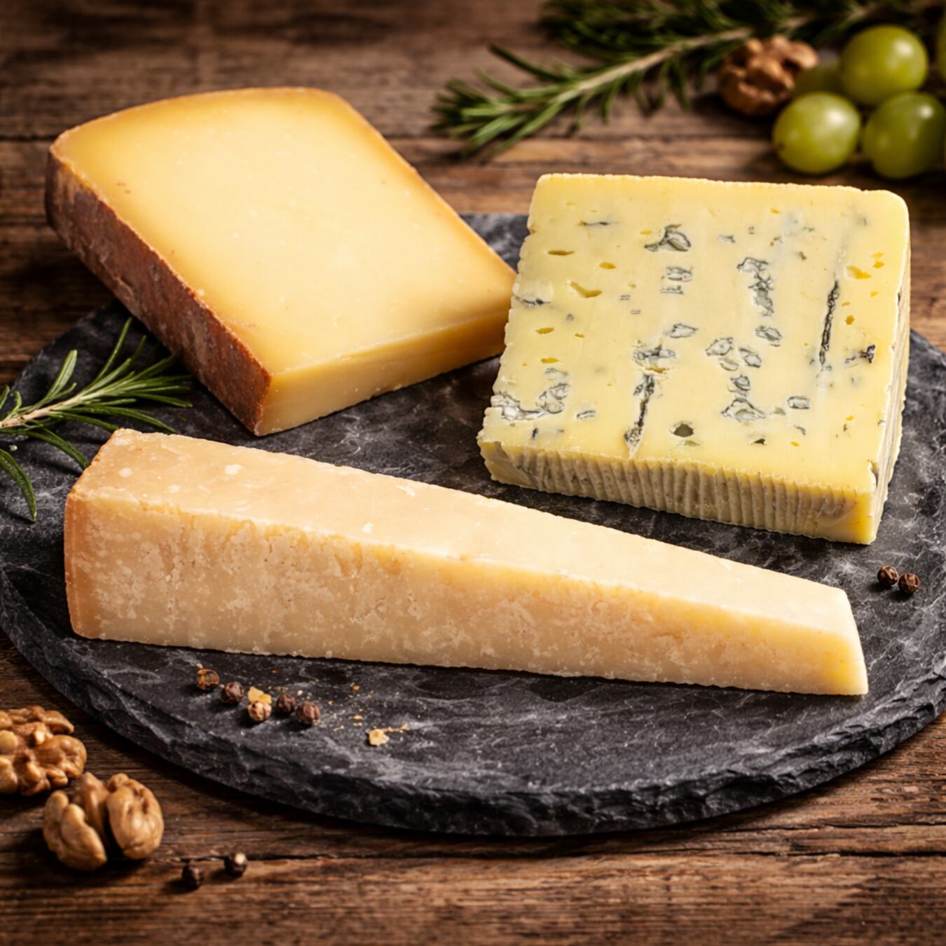 力強い味わいの「コンテ ド モンターニュ」、旨味が凝縮された「パルミジャーノ レッジャーノ」、そしてまろやかな「トム ド ラカイユ」。